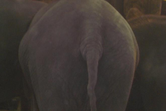 And I would have more pictures of the circus, but we went to the pre-show elephant exhibit and Savannah wanted to take pictures so I let her use my small digital camera. I had no idea … until we got into the show and the camera flashed **low battery** that she had taken tons of pictures of the elephants. I actually took this one and it is the only elephant picture I took.