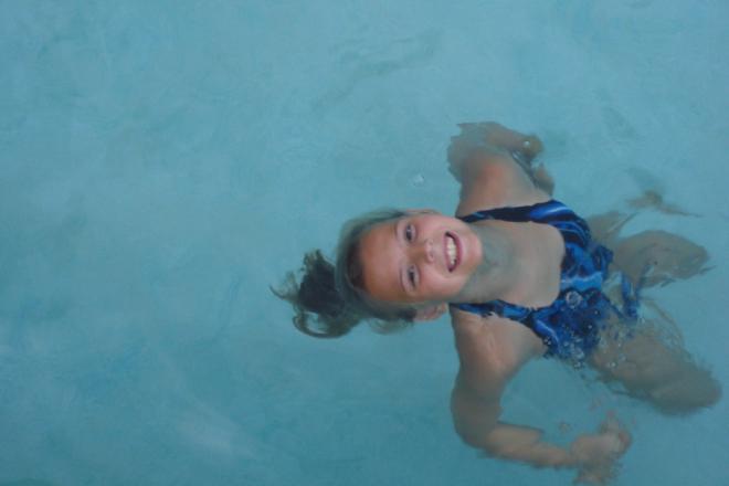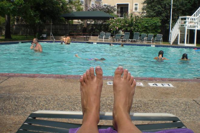 On this, my 14th summer of taking people to the pool, I can actually lay on the side of the pool and read a book (thank you, thank you, thank you wonderful swim team coaches!!!). And when I look out at the pool, it looks like this: