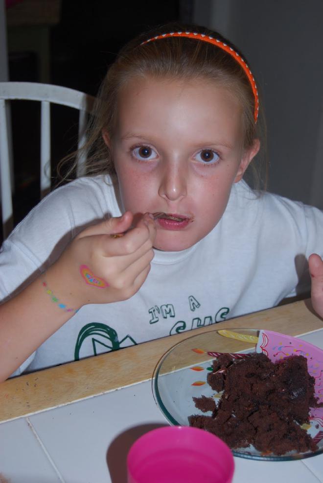 When she got home I had a cake for her. She requested chocolate cake with chocolate icing. And so Betty Crocker and I made her just that. I even bought a can of decorator icing (pink). When she saw the cake (and without knowing I had the pink icing) she asked … “Mommy, can you write Happy Birthday Savannah on it in pink icing?” Do I know my girl or what?!