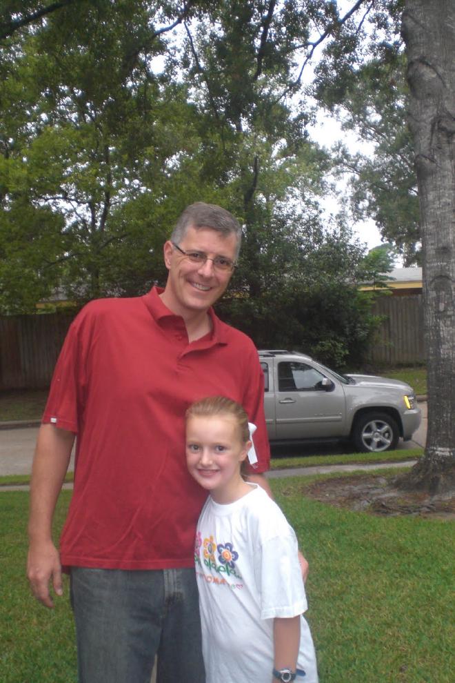 He dropped her off at 9:00 at our high school for a two hour cheerleading clinic. The high school cheerleaders teach the girls some cheers and next Friday night they get to go onto the field and cheer just before the high school game. They get a t-shirt and think it’s a lot of fun. Bill went back and got her so he could watch the “parent performance”.