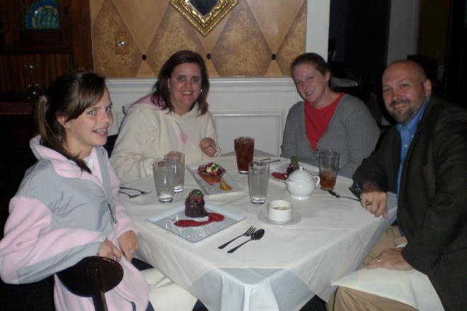 Stephanie asked Caroline a question while she was spooning in all that chocolate goodness and Caroline didn’t even hear the question. She looked up, in a chocolate stupor, and said … “huh?” She really was lost in the dessert.