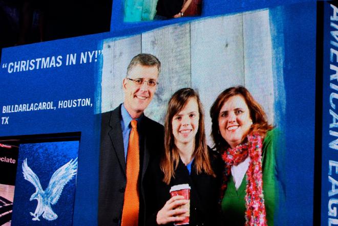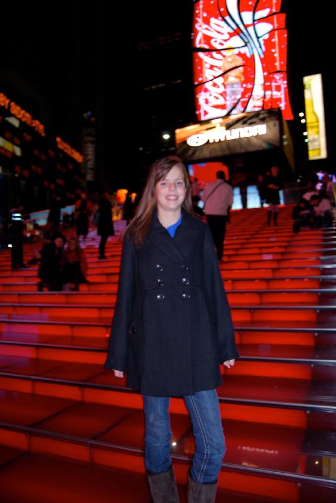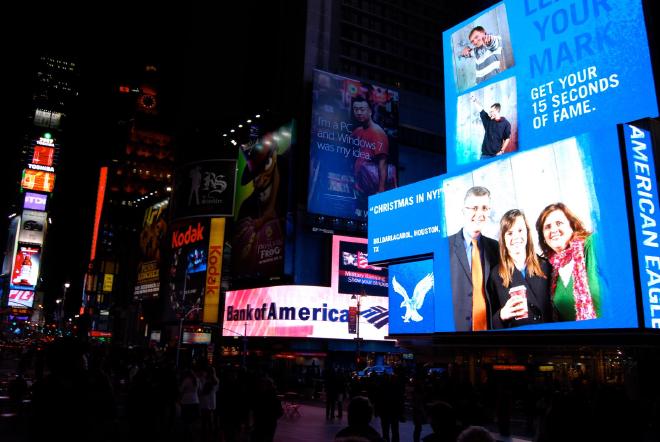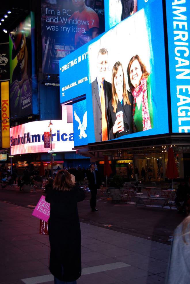 This was kind of like a really big deal. At least for me. I mean, there we were, right smack dab in the middle of Times Square. The American Eagle store was running a promotion called “15 seconds of fame” and if you purchased something in their store (I bought earrings), they would take your picture, add a message and put you up in lights.