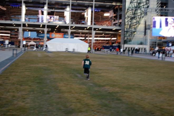 There are only two entrances into the stadium … one on either end of the field. It totally worked. In fact, Jacob couldn’t run towards the entrance fast enough…