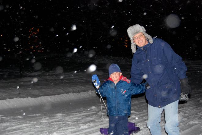 It took Bill, otherwise known as Nanuk of the North, all of about 15 minutes to find his favorite hat (he bought it in Helsinki, Finland about 10 years ago and said one day it would be popular in the U.S. - I’m still waiting). He took the kids out for a quick late night Christmas Eve sledding adventure.