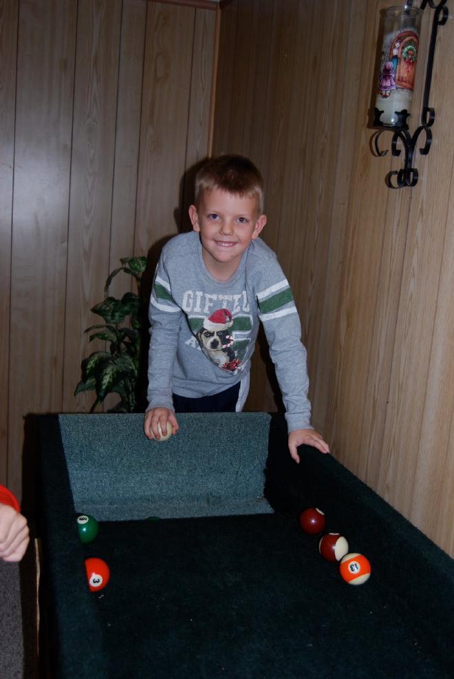 In a “never been done before” addition to the year, a carpet ball competition was held. Everyone played and Brittany won! Grandpa made a trophy and she got to put her initials on it.
