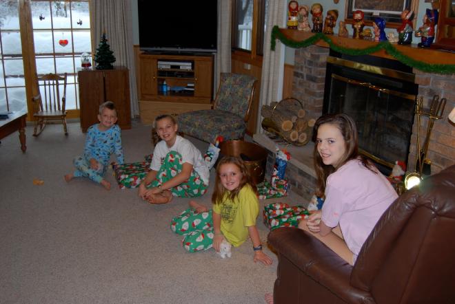 When the cousins arrived we had Christmas dinner. Bill’s mom bought some ham and sliced it into thick pieces and poured orange marmalade jelly over the top and warmed it. It was really good. She always has bar-b-que meatballs for the kids which they love … not very traditional maybe but loved by all the kids (and an adult or seven).