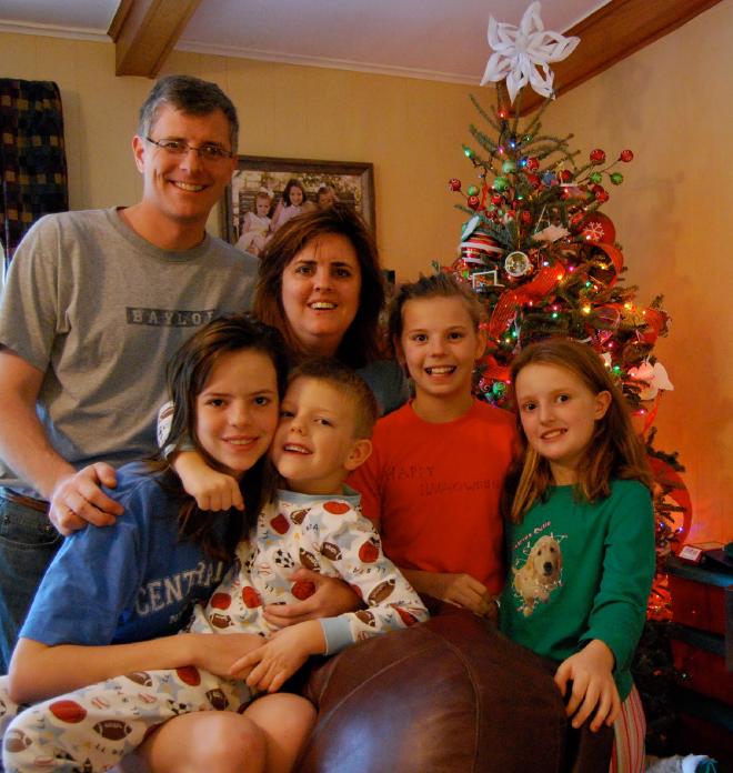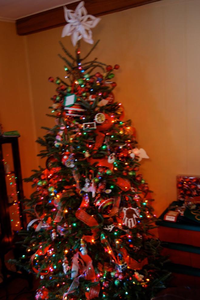 And just to keep in the Christmas theme, I want to share some pictures of our tree. Mostly so I won’t ever forget it because it was my most favorite tree ever. The kids and I bought it at Lowe’s in all of about 3 minutes … it was freezing and we asked if we could buy one of the display trees. My sister (the decorator) added ribbon to the tree when she was in town. She will have to come back if I am ever to have a tree that pretty again. I couldn’t even begin to do what she does. I bought different size ball ornaments in a set at Costco and then ordered “picks” for the tree from Mrs. Cayce’s Christmas Store. I really thought it was perfect except that it needed a star. Next thing I knew, Savannah made a three dimensional star that she put on top of the tree and I LOVED it.
