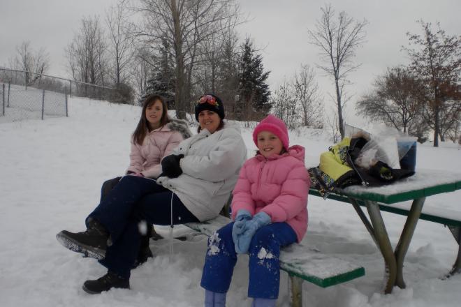 So warm and cozy … coming home and drinking hot chocolate is my favorite part of sledding.