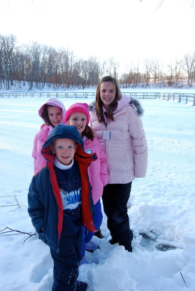 Bill took a picture of the kids on the side of the lake.