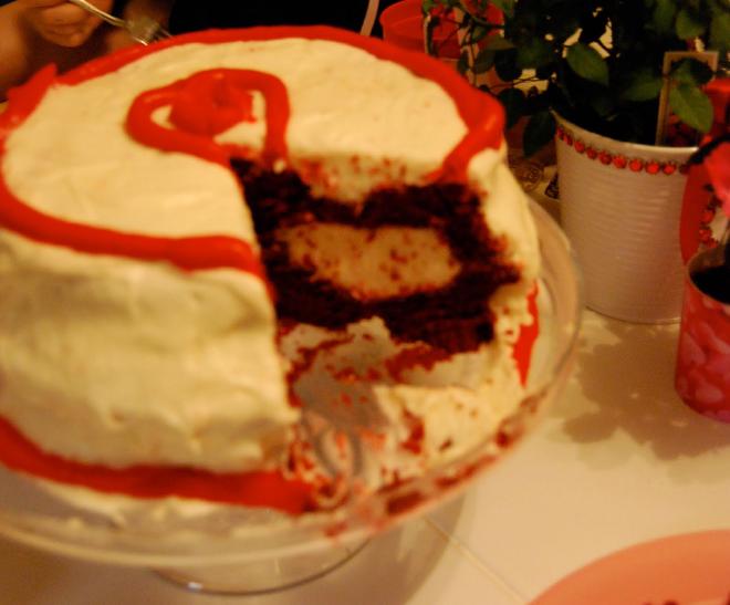 I was nervous about cutting into the middle of the cake since things like this don’t seem to ever turn out well for me, but surprisingly, it actually looked like a heart in the middle of the cake!