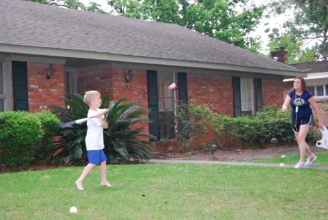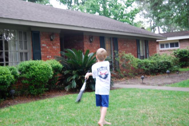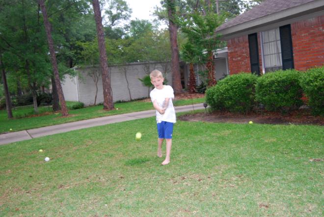 One of the latest joys of my life is pitching balls to my son in the front yard.