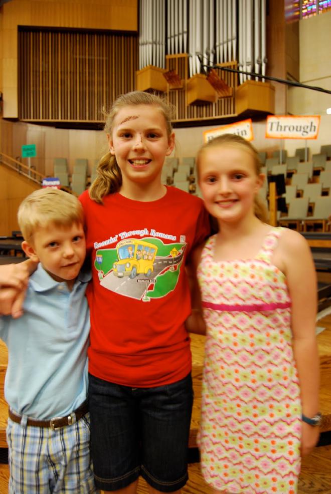 3. Speaking of her injuries, she won the “what’s broken this week” award at the end of the year choir party. It seemed every week she came in limping, or had ice on a jammed finger from basketball .. or something. I never realized how banged up she was on Wednesday nights until they “honored” her this way. She, Savannah and Jacob sang in their end of the year a few weeks ago. Brittany’s choir did a “mini-musical” called “Roamin’ thru Romans”. I always enjoy their program.