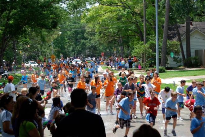 They run to the pool at the end of the street. SUCH a fun tradition.