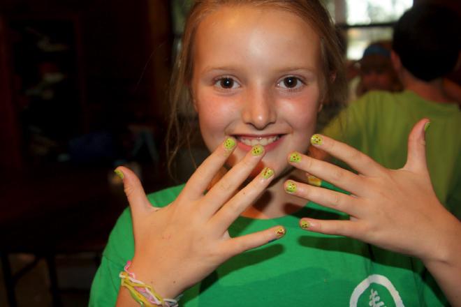 I told you it rained a lot at camp. So much so that she ended up with this pink polka dot combo by the end of the week. It was one of many “inside” activities.