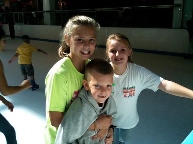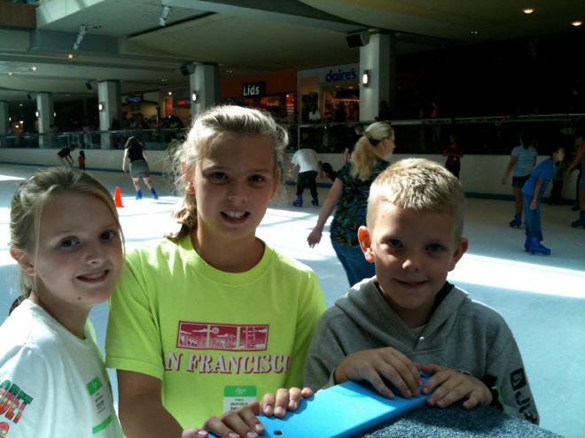 We did want to soak up every last bit of summer that we could today. I thought we might hang out at the pool but then read in the paper that there were heat warnings in the city and that it is close to being the very hottest August on record for Houston. So, it was too hot to go to the pool. Sad day when that is the case, sad day. Instead of feeling sorry for ourselves (which mostly would have been me feeling sorry for myself that Bill was gone) we decided to beat the heat and go ice skating. It was a nice diversion from the heat.
