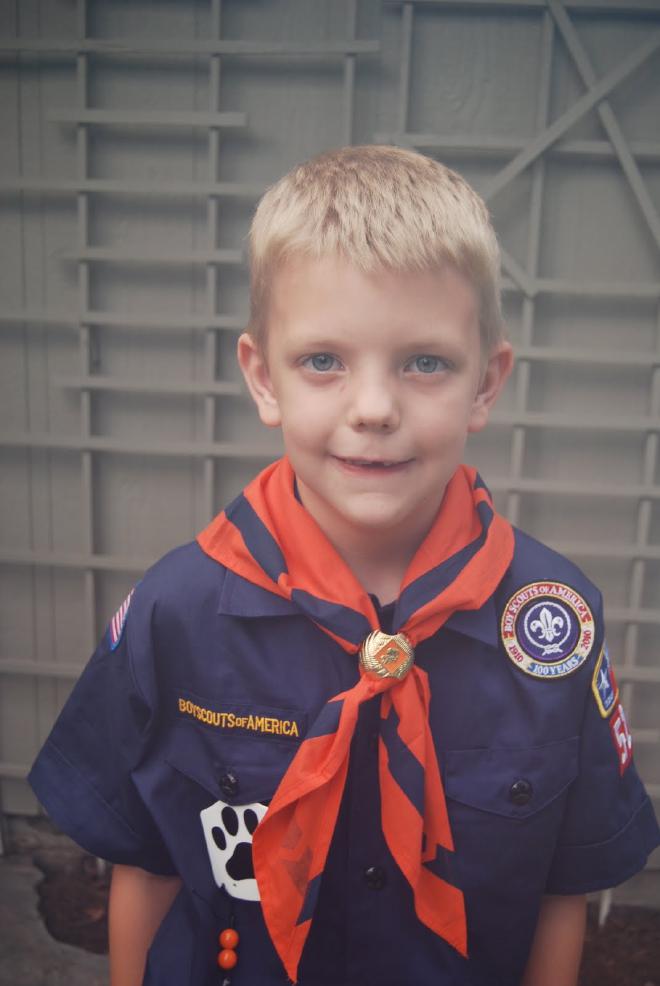 Bill left work early yesterday to trek to the Boy Scout store to buy the uniform and even took it to the dry cleaners to have the patches sewn on.