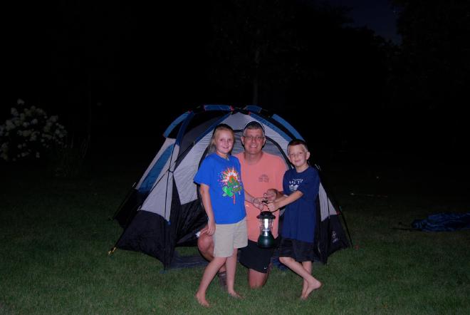 And there was even some sleeping under the stars. (That is until Bill thought it was raining and moved them into the gazebo - only to find out, come morning, that it was just moisture from the air which got on the moon roof of the tent - which he had left open to see the moon - dripping down on his face. You have to understand - the man is a city boy.) I laughed my head off.