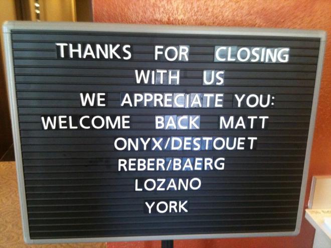 We both signed 4,722 dotted lines … then I had to sign them all again because I hadn’t added my middle initial even though she had told me to do that. I’ve mentioned before that I’m not a detail person, right?!?