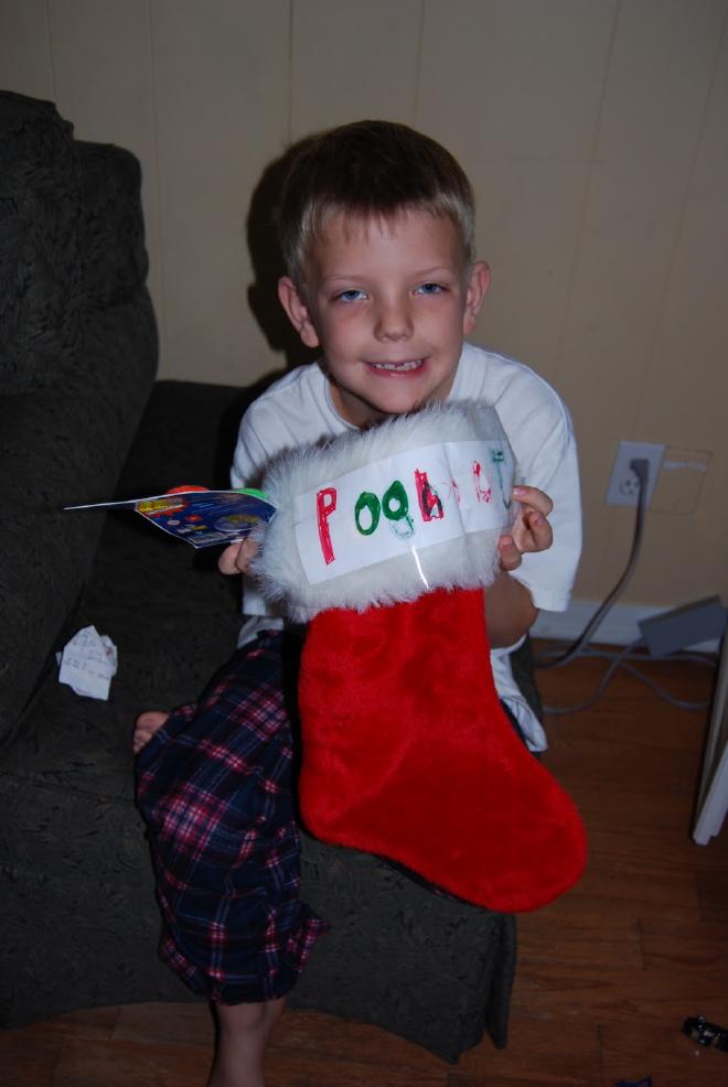 Oh, and there were stockings. The funny thing about the stockings were that at my moms house they have similar stockings only with their names on them. Bill’s mom has stockings with their names on them too. When Jacob saw that our stockings had no names on them, he was heartbroken. So, we made names for them. I loved them!