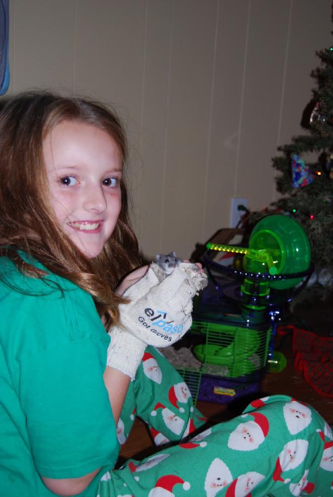 Christmas morning we slept until 10:00 (I LOVE MY KIDS!!!) and awoke to find Santa had answered Savannah’s request and brought a hamster. The Baergs, once again, have a live animal to take care of.