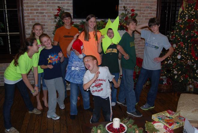 After the snow, we went back to the Browns house for our annual Christmas pageant. It almost didn’t happen as the kids are getting older but Jacob pleaded his case before Tommy Brown that he deserved to be Jesus in this years rendition … as so it was accomplished in those days that Mary and Joseph went to Bethlehem and Jesus came along too (it was a bit of a different version) …