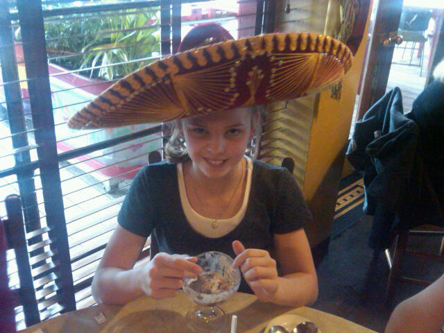 We went to our favorite Sunday Mexican place, Pappasito’s, for lunch and Brittany got to don the requisite “party hat” while the waiters sang to her. She is JUST LIKE BILL when it comes to things like that … which means she doesn’t really enjoy people singing to her while she wears the hat … but she wanted the dessert so it all balanced out.