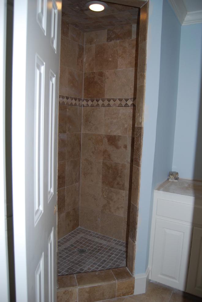 Both bathrooms have the tile finished and cabinets built … we just need sinks and counters and light fixtures and mirrors!