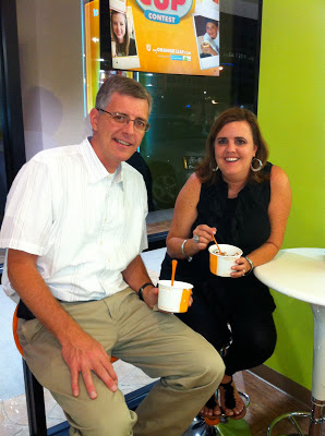 The funny thing is on Saturday I was back with the girls at this same yogurt spot and there was an elderly couple sitting at this same table - perched right in the window enjoying their yogurt. I almost asked them if I could take their picture because it was such a “before” and “after” but then I thought it might freak them out. :)