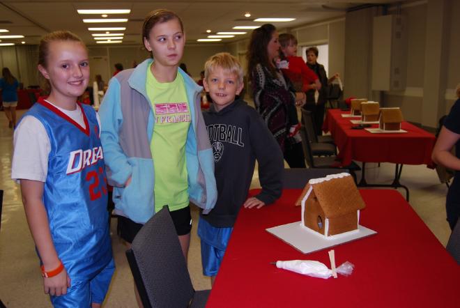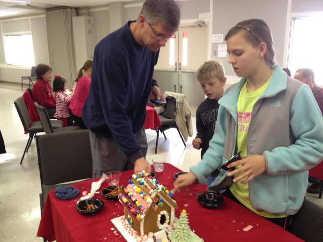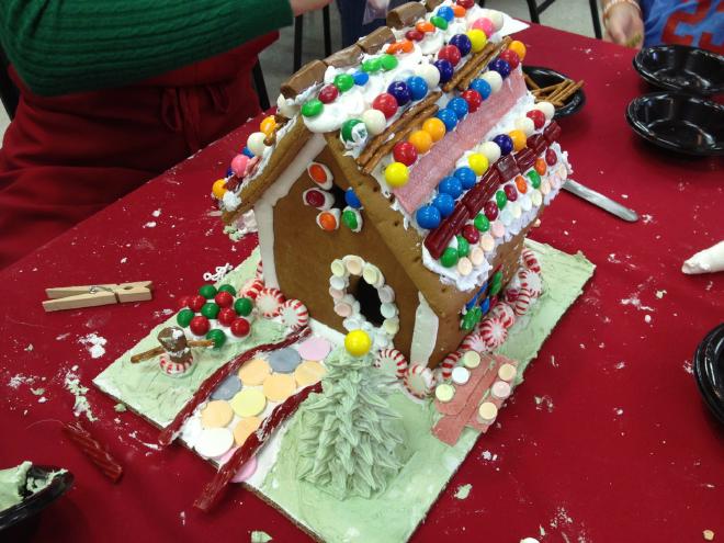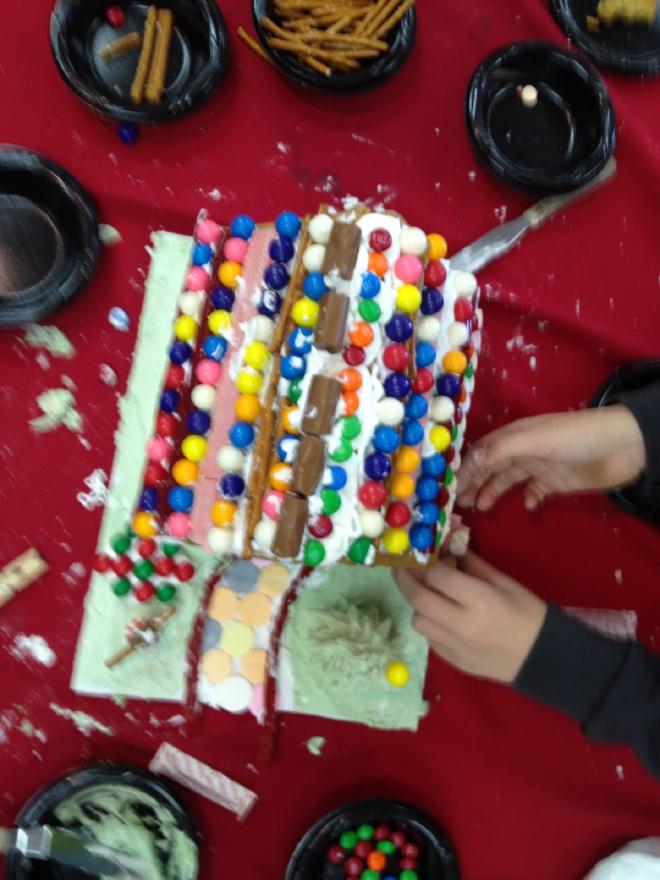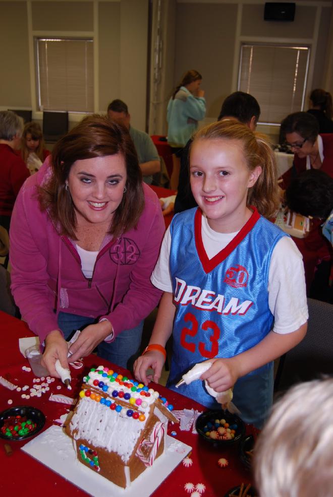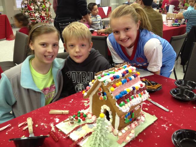 So this year when I saw an announcement for a gingerbread party at our church I signed right up. It sounded fun to me … someone else puts the houses together (getting the walls to stick together was always a PROBLEM for me!), there would be lots of candy … and best of all … I wouldn’t have to clean my kitchen.
