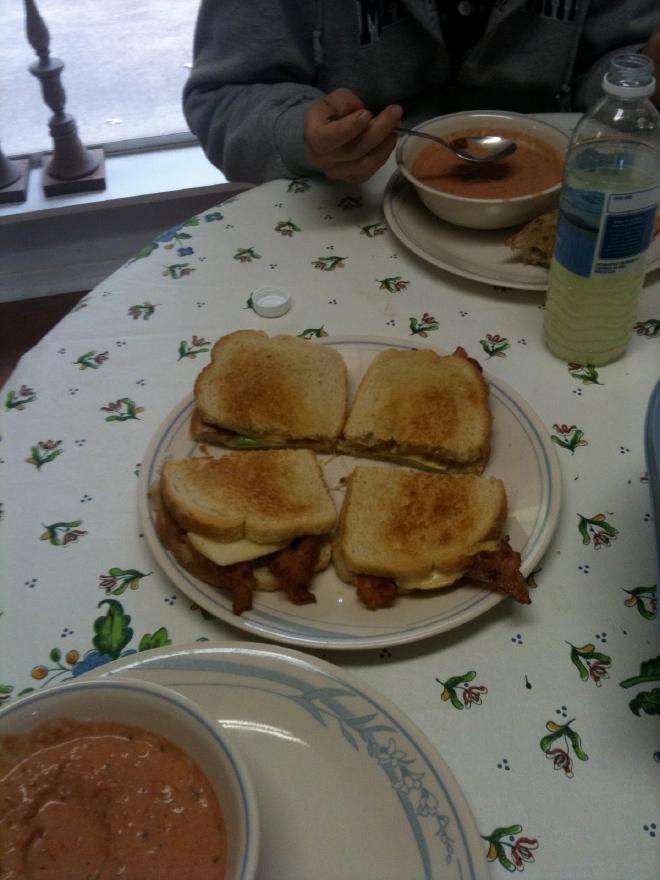 And a grilled cheese with bacon and avacado sandwich …. that was DELICIOUS. I made it for the Hilltop Honeys and the Dilla Honey’s (ha! my parents, the Dillahunty’s) and they all agreed it was a keeper. This picture isn’t very good but the the truth of the matter is that it is one of only two pics that one of the honeys (Deb) took at our girls weekend … and the other pic was of the sandwich too. My how the mighty have fallen. Anyway … this sandwich will change your life. For real.
