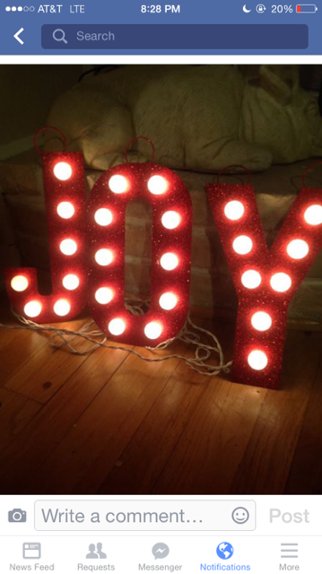 For Christmas last year my sister gave me a “light up” joy sign. It was exactly what I wanted. A few weeks earlier I had signed up for a class at Home Depot to make a cute sign that had the word “joy” in lights. This was the sign I was SUPPOSED to make.