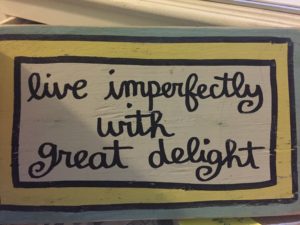 I have a sign on my desk that says “Live imperfectly with great delight”. I love that thought. Despite the fact that things may not be as we wish… we can live with delight.
